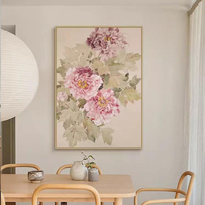 牡丹餐桌背景墙客餐厅欧式单幅壁画