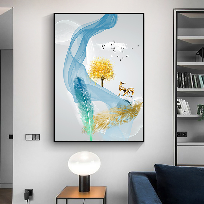 现代简约麋鹿客厅沙发背景墙挂画