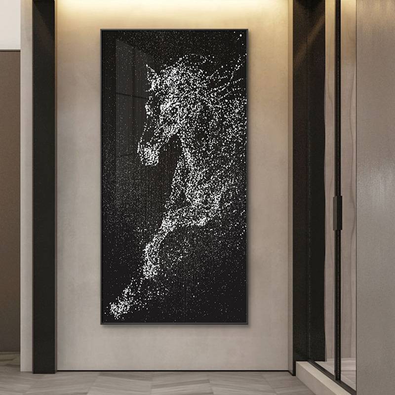 现代玄关竖版过道走廊黑白马壁画